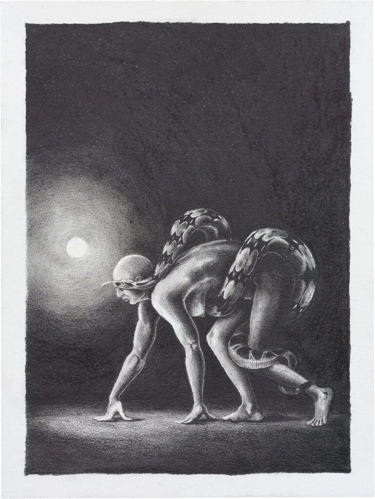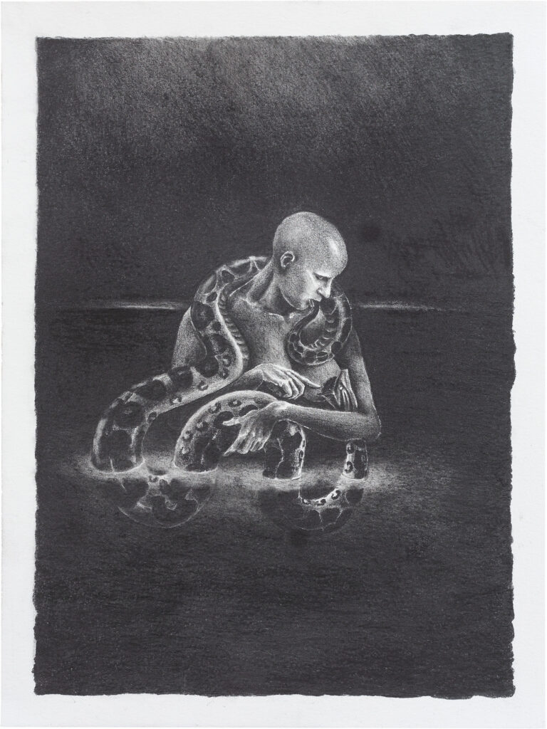 Dessa maneira, proponho poeticamente a criação de cinco trabalhos a partir da dinâmica de hospitalidade do eu nativo consciente, em confronto e acolhimento com o eu inconsciente e entrangeiro, admitindo a própria natureza e idioma de suas imagens simbólicas e arquetípicas, seja dos sonhos, das visões, ou da imaginação, de conteúdos pessoais e coletivos. Propõe-se que a subjetividade se realize justamente a partir da alteridade interna, entre o ego consciente, e o imaginativo, o onírico, o fantástico e o numinoso de um inconsciente que se tornou estrangeiro, para o olhar racional. Prevê-se que as obras sejam realizadas em papel, se valendo possivelmente das técnicas de aquarela, nanquim, giz pastel ou grafite, a partir do registro e da criação poética posterior de sonhos e imaginação ativa.